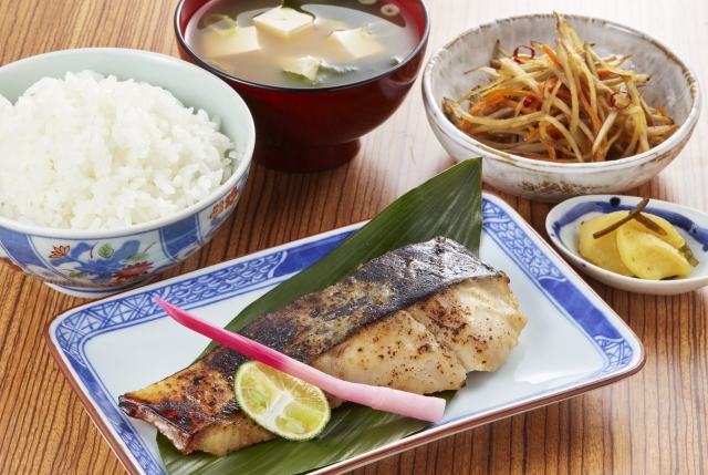 サバやイワシといった栄養豊富な青魚を焼き飯と味噌汁、季節の野菜と一緒に盛り付けましょう。